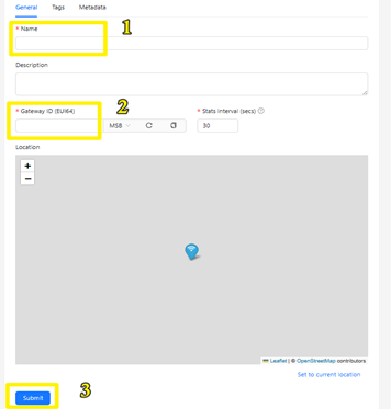 On the Add gateway page, enter the gateway name and gateway ID and select Submit.