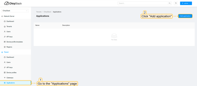 - Go to the “Applications” page in the left menu and click on the “Add application” button.