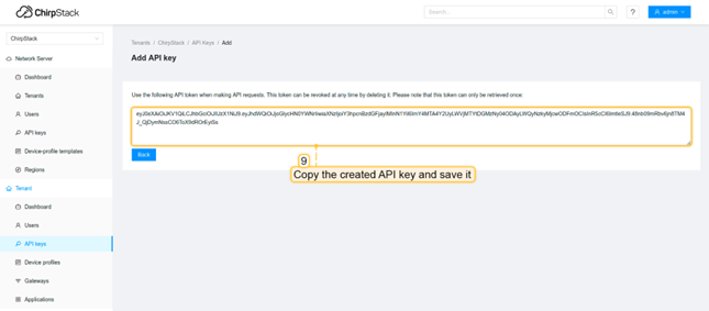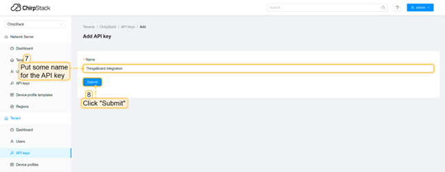 - Copy the created API key and save it as it will be needed for integration with ThingsBoard.