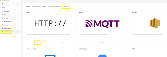 - Open your Chirpstack, go to the “Applications” page → Your application → “Integrations” tab.Find and click on the “HTTP” tile.