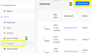 Login the Chirpstack configuration interface, select Gateways→ Add gateway
